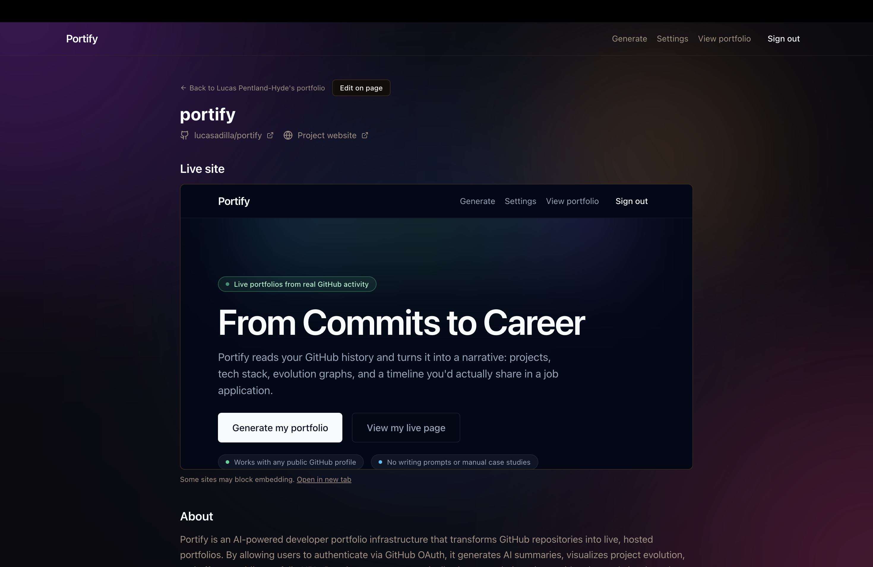 Example of a portfolio page.