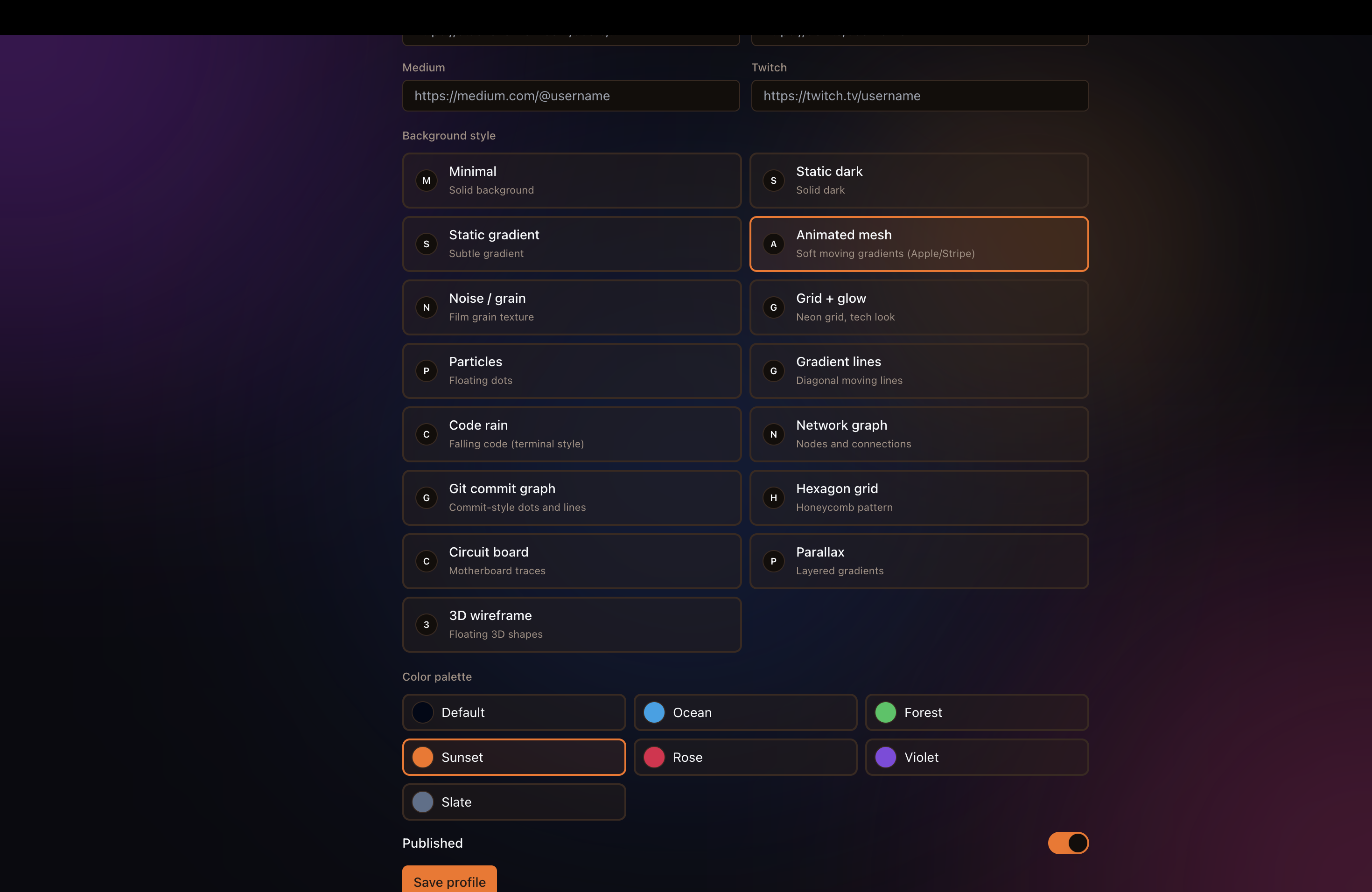 Some of the customizability options available to the user.
