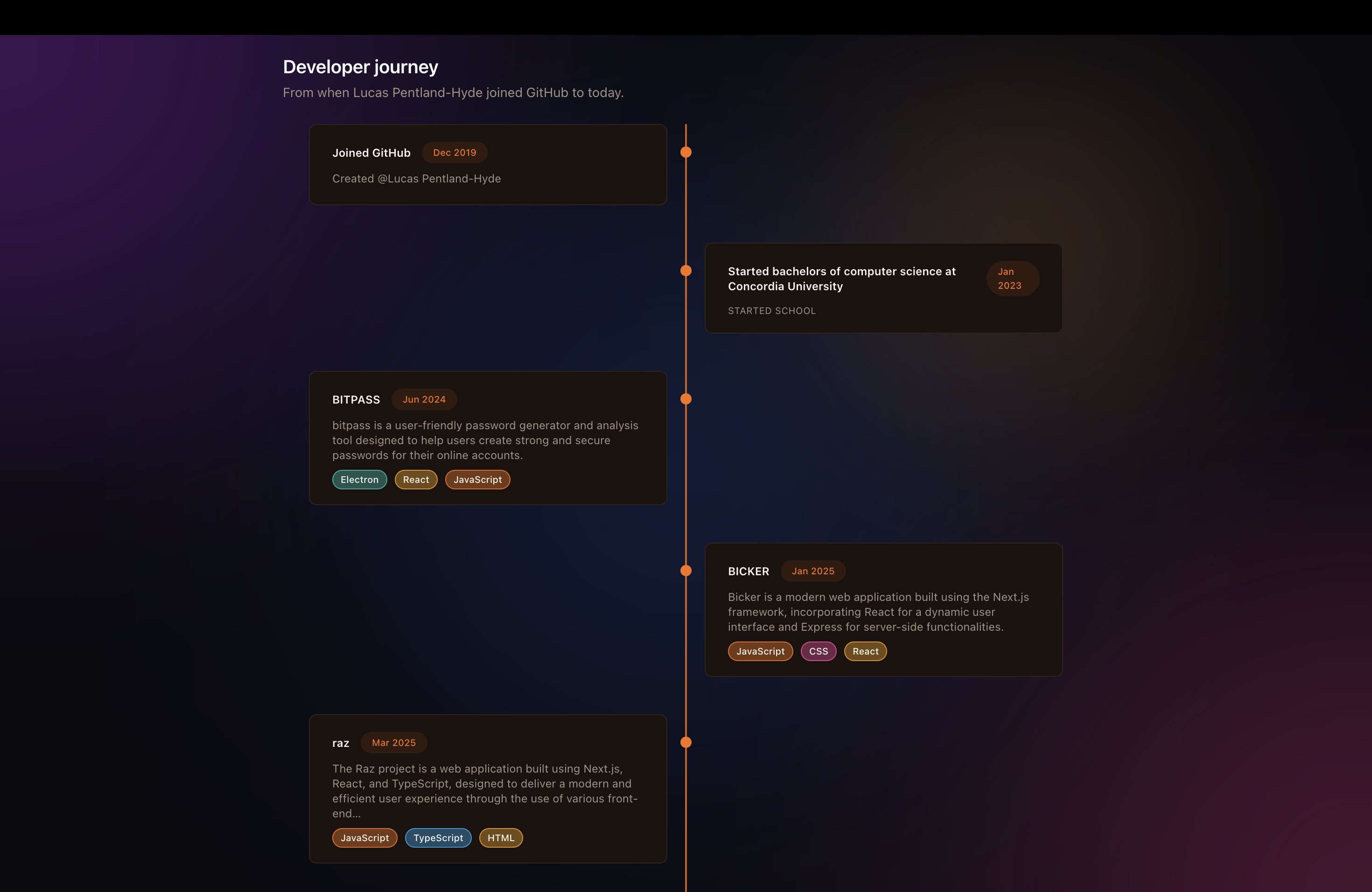 A timeline of projects and experiences.