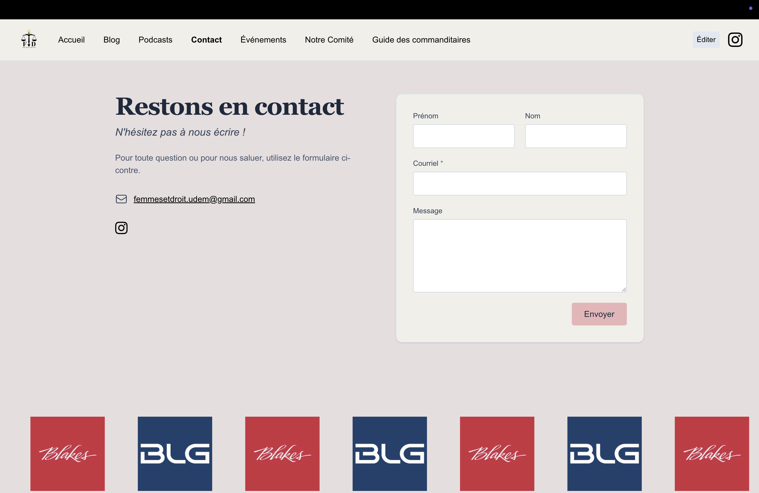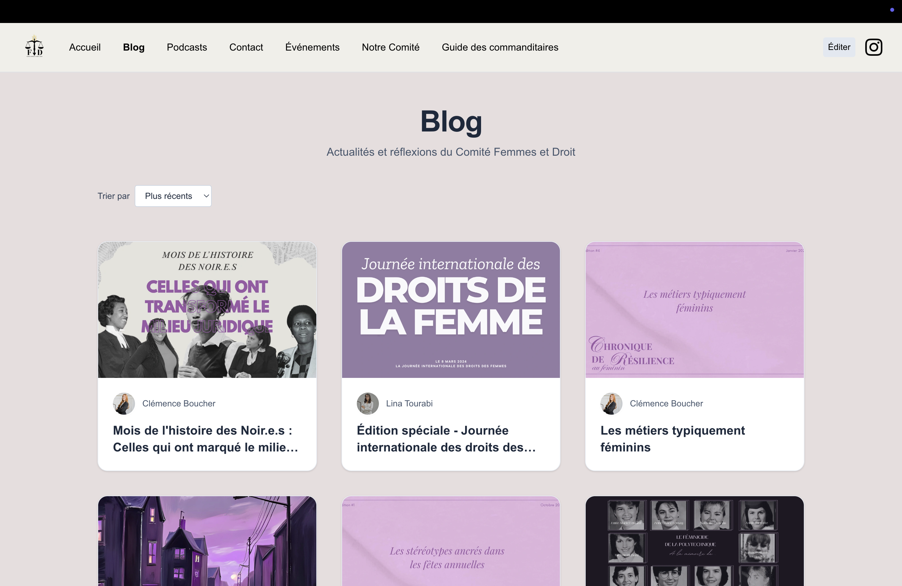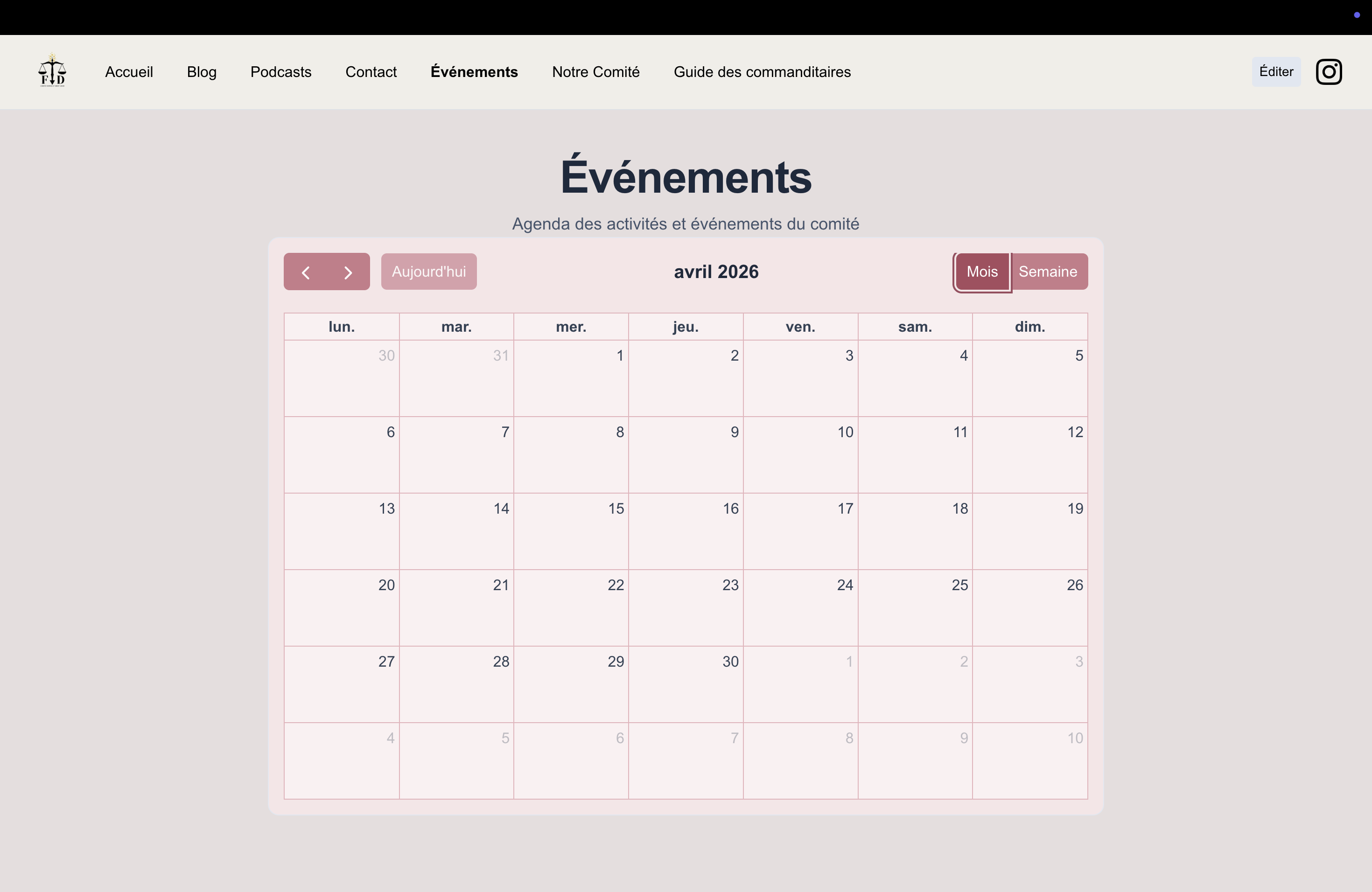 The events page, which shows all the events organized by the UDEM Women in Law organization.